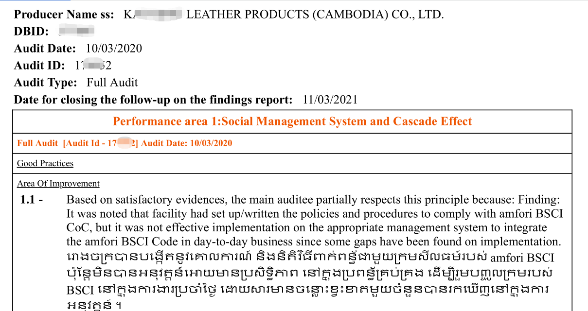 祝佳寧皮具制品(柬埔寨)有限公司通過BSCI驗廠審核