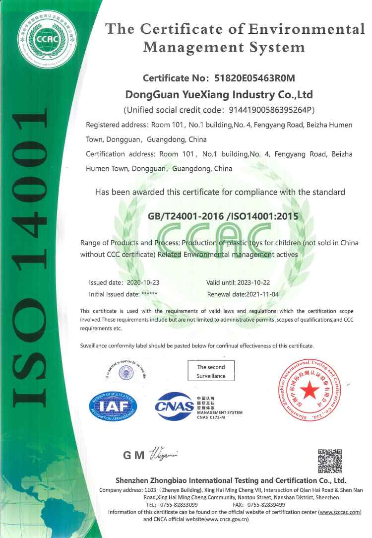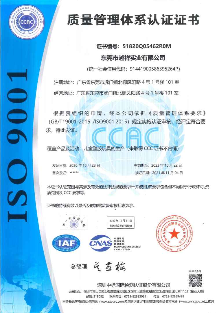 祝東莞市越祥實業(yè)有限公司通過ISO9001質量認證、ISO14001環(huán)境管理體系認證