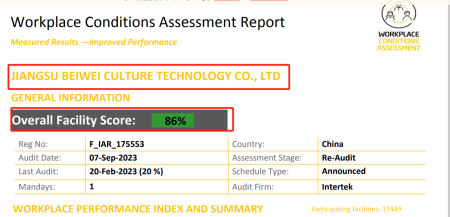 祝賀江蘇百威文化科技有限公司2023年快速通過(guò)ITS-WCA驗(yàn)廠